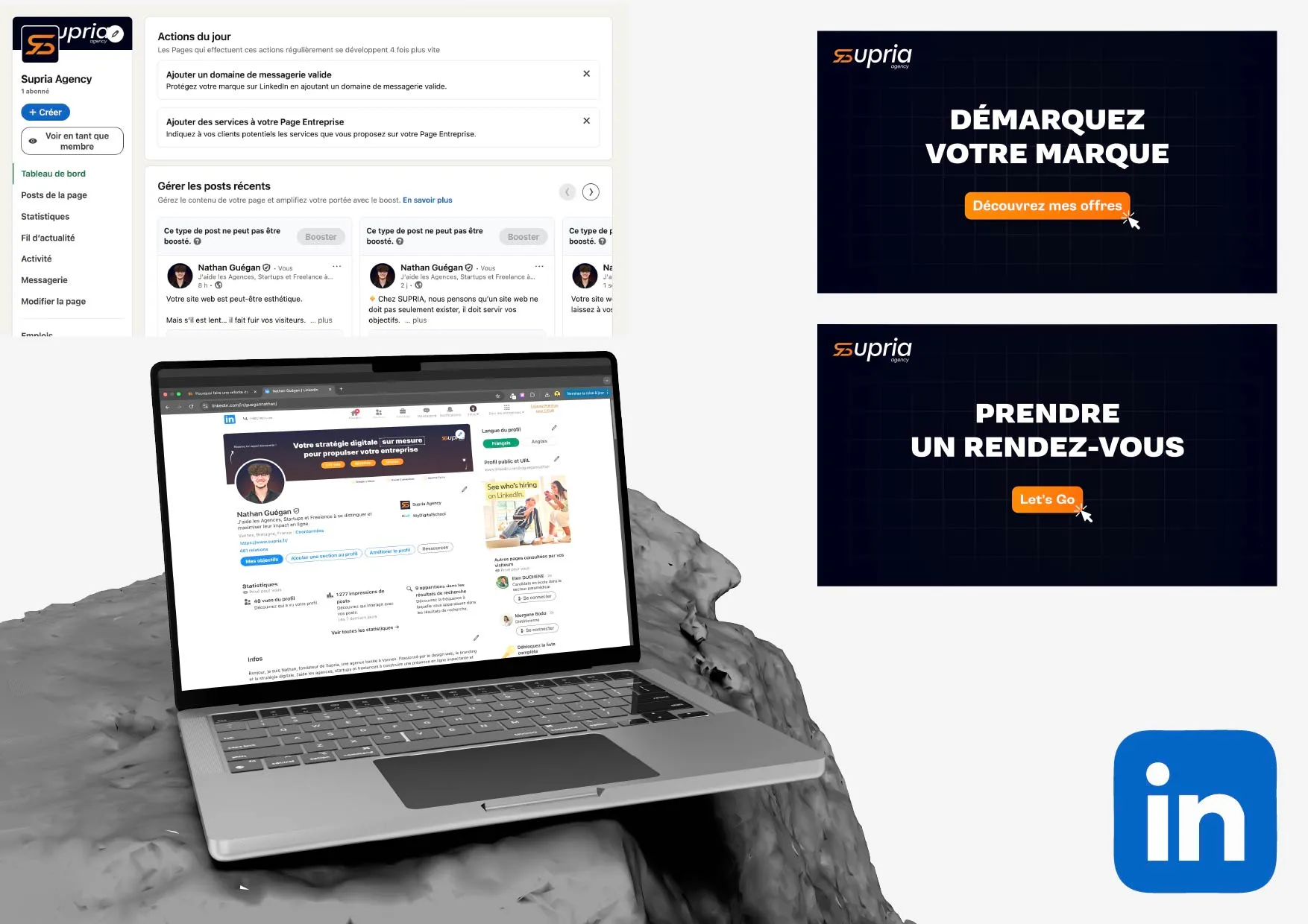 - Page LinkedIn, pour affirmer le positionnement B2B.