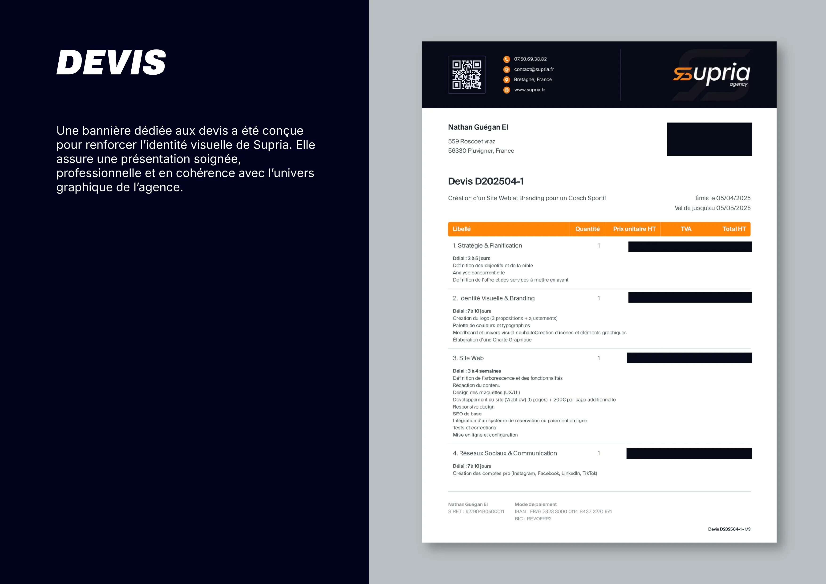 Ces livrables constituent la base concrète de Supria, que je peux désormais utiliser dans ma vraie vie de freelance.