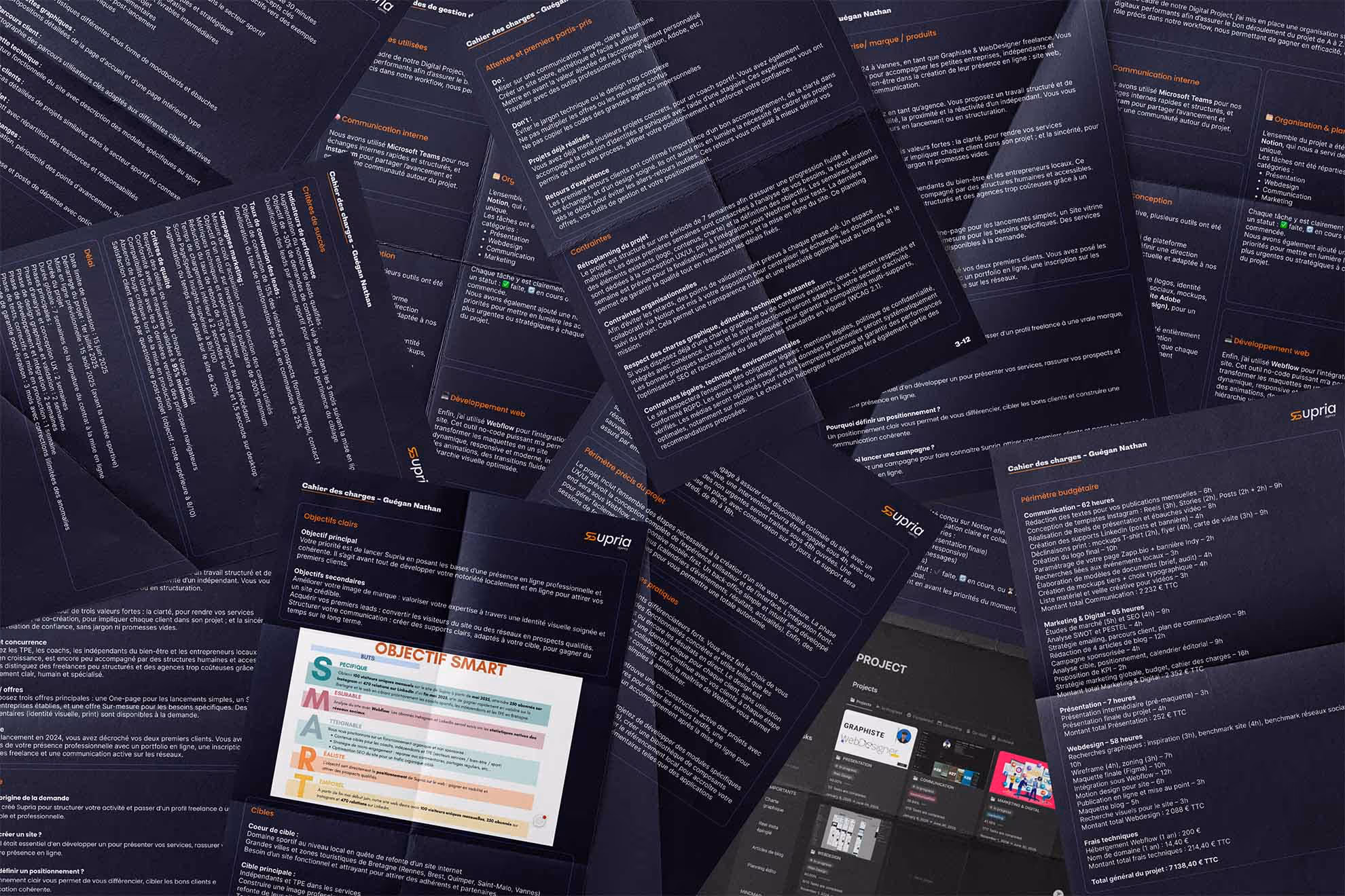 Avec Supria, je souhaitais proposer un accompagnement sur-mesure, humain, fiable, fondé sur des valeurs fortes : clarté, co-création et sincérité.Ce projet m’a permis d’activer toutes les dimensions d’un lancement de marque : création de site web, élaboration d’une identité visuelle complète, stratégie de communication, organisation de projet, gestion collaborative, branding et marketing. Il s’agit à ce jour du projet le plus complet, personnel et professionnalisant que j’ai mené durant ma scolarité.