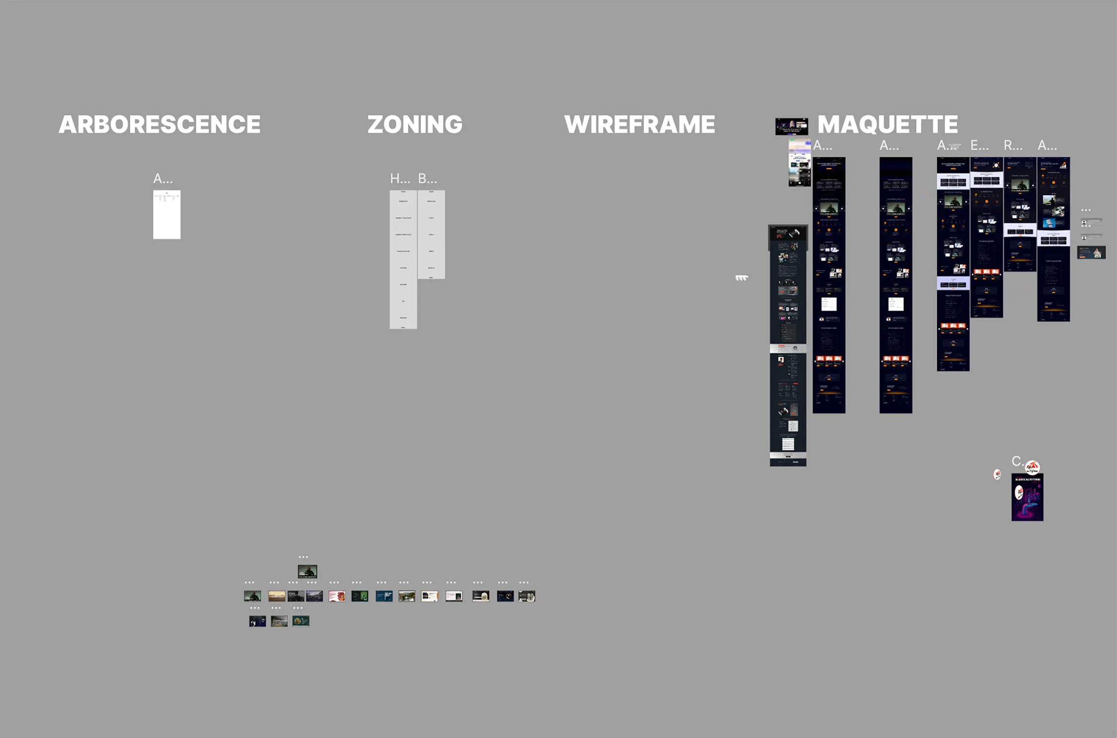 - J’ai commencé par établir un zoning global du site, pour définir l’organisation des blocs de contenu par page.
